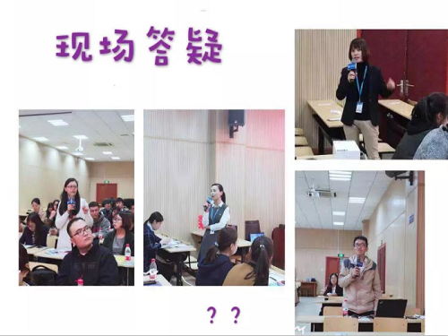 宣讲结束后,进入到现场答疑环节,同学们积极地举手咨询,提出了自己对于职业发展,培训晋升等疑惑,左经理和徐经理对同学们的问题进行耐心的解答。