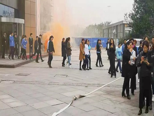早上8:30,随着大楼警报声响起,模拟卖场内发生火情,正迅速蔓延。各楼层管理员迅速组织员工紧急疏散。演习开始后,员工们用湿毛巾捂着口鼻,弯着腰逃离“火灾现场”,并迅速关闭大楼内所有消防卷帘,控制“火势”蔓延,所有员工紧张有序地逃离火场成功疏散到安全地带。